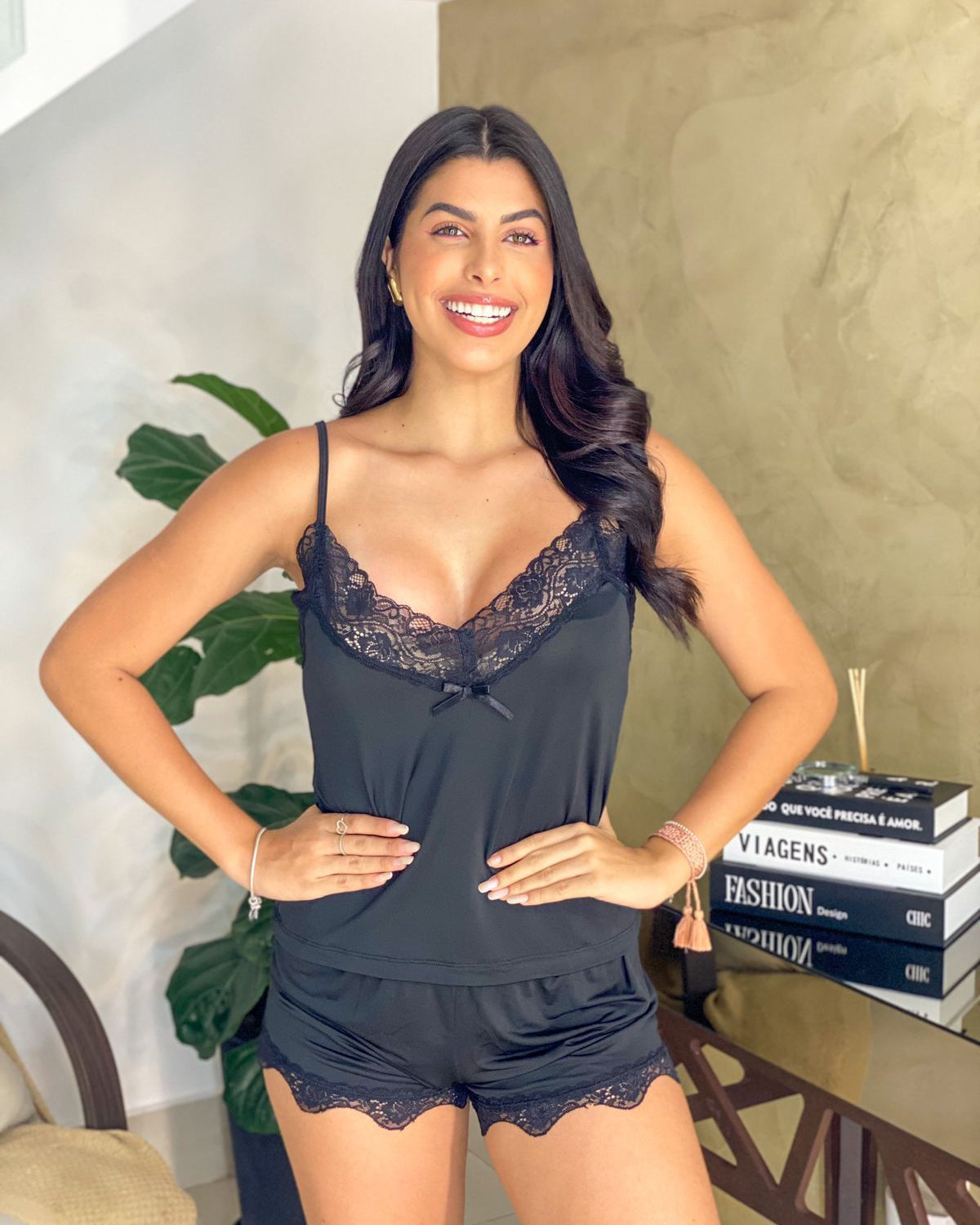 Nosso Short Doll em liganete é ideal para quem busca leveza, toque macio e um caimento perfeito. A blusa lisa com renda delicada e elastano no decote valoriza o busto, enquanto o short com renda na barra traz um toque romântico e feminino.