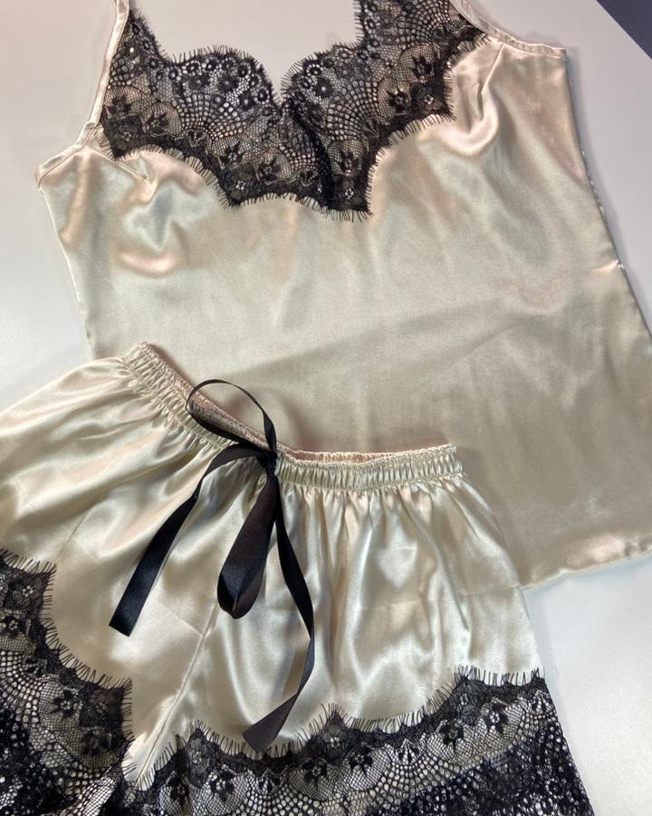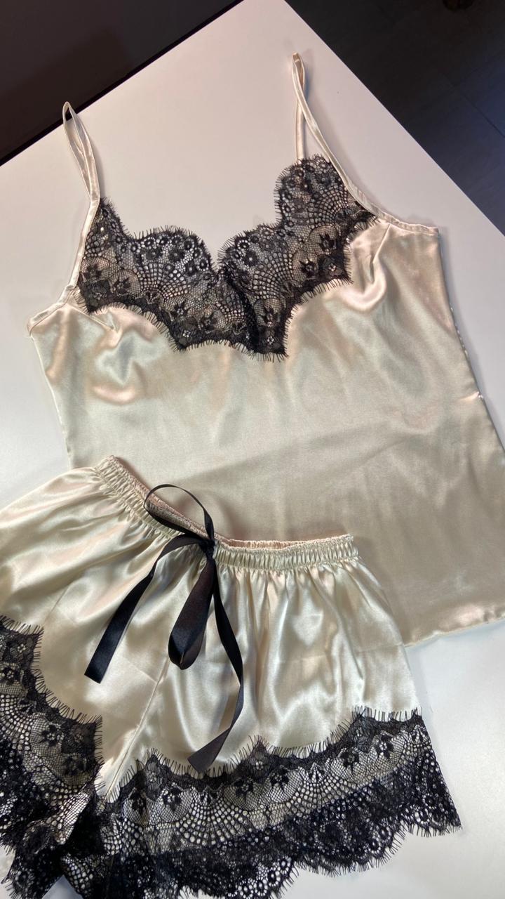 Conjunto de dormir em cetim com renda, traz o equilíbrio perfeito entre leveza, sensualidade e bem-estar. Feito em cetim macio e delicado, com detalhes em renda que valorizam o corpo e trazem um toque de sofisticação.